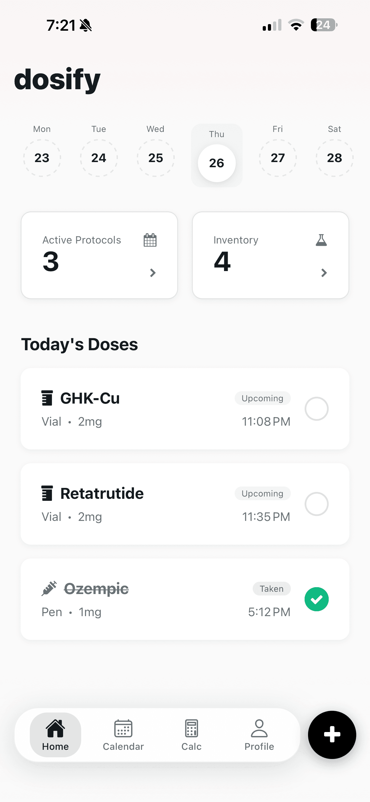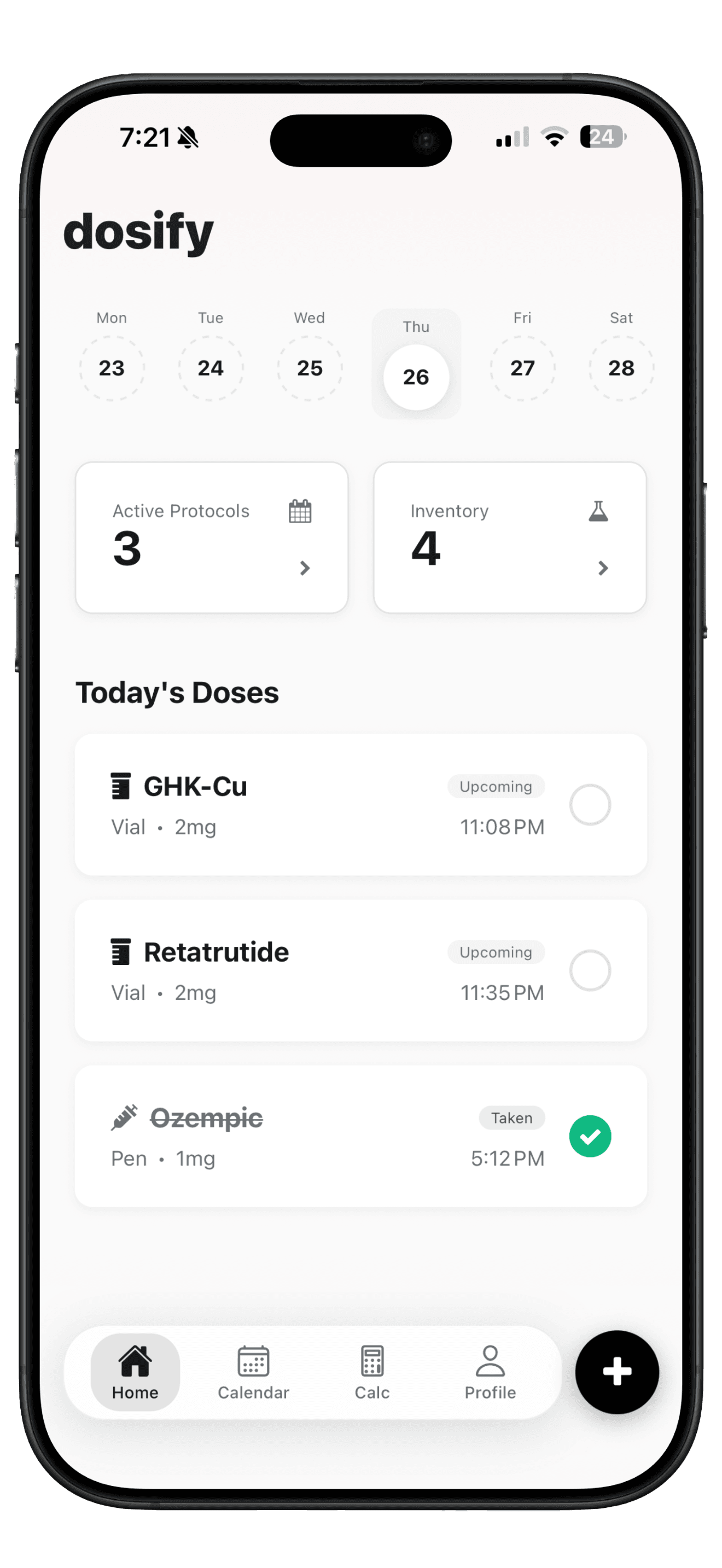Track vials, pens, and units so you never run out mid-protocol and lose momentum.